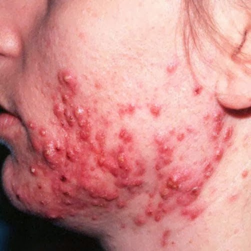 ACNE FULMINANTE: El acné fulminans es una enfermedad poco frecuente, de inicio súbito con lesiones de acné severo, que evolucionan a ulceración, fiebre, dolor de articulaciones y con escasa respuesta al tratamiento. Hay lesiones ulcerativas, costrosas y dolorosas, con gran componente inflamatorio, localizadas en la espalda, el pecho y la cara y fiebre e intensa afección general.